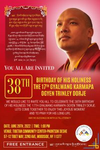 This event has passed. Like +1 Add to calendar Google Calendar iCalendar Outlook 365 Outlook Live Details Date: June 26, 2022 Time: 1:00 pm - 10:00 pm Organizer: Karmapa Service Society, New York Add Event Donate
